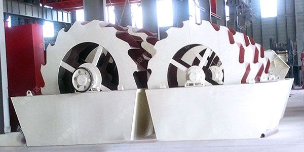 電機通過三角帶、減速機、齒輪減速后帶動葉輪緩慢轉動,砂石由給料槽進入洗槽中,在葉輪的帶動下翻滾,并互相研磨,除去覆蓋砂石表面的雜質,同時破壞包覆砂粒的水汽層,以利于脫水;同時加水形成強大水流,及時將雜質及比重小的異物帶走,并從溢出口洗槽排出,完成清洗作用。干凈的砂石由葉片帶走,最后砂石從旋轉的葉輪倒入出料槽,完成砂石的清洗作用。